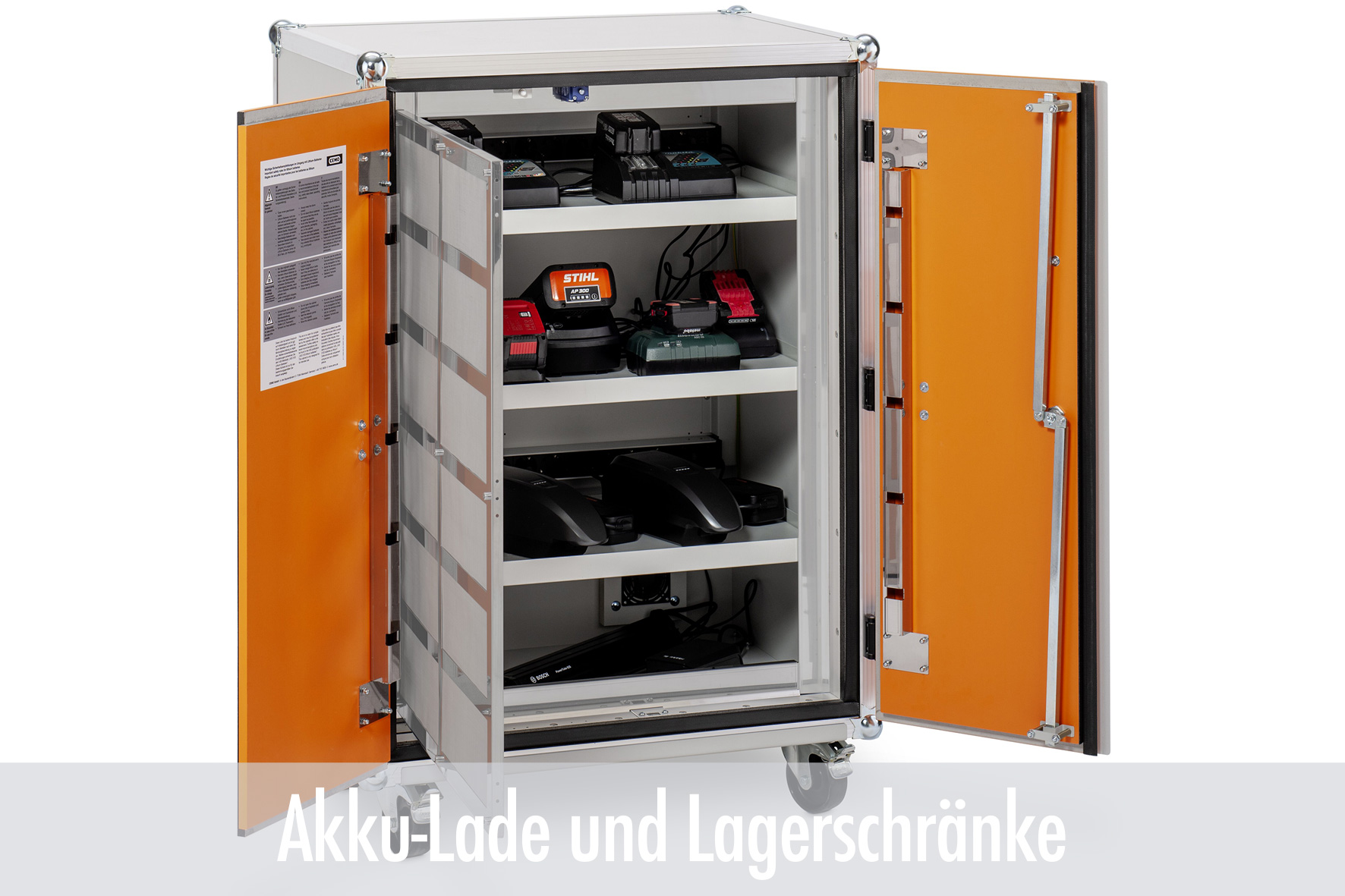 Lithium-Batterien müssen immer gut geschützt werden. Wir sorgen mit einem Rundum-Angebot für Sicherheit. Weitere Produkte, wie Brandschutzcontainer mit Feuerwiderstandsfähigkeit von 90 Min., auf Anfrage.